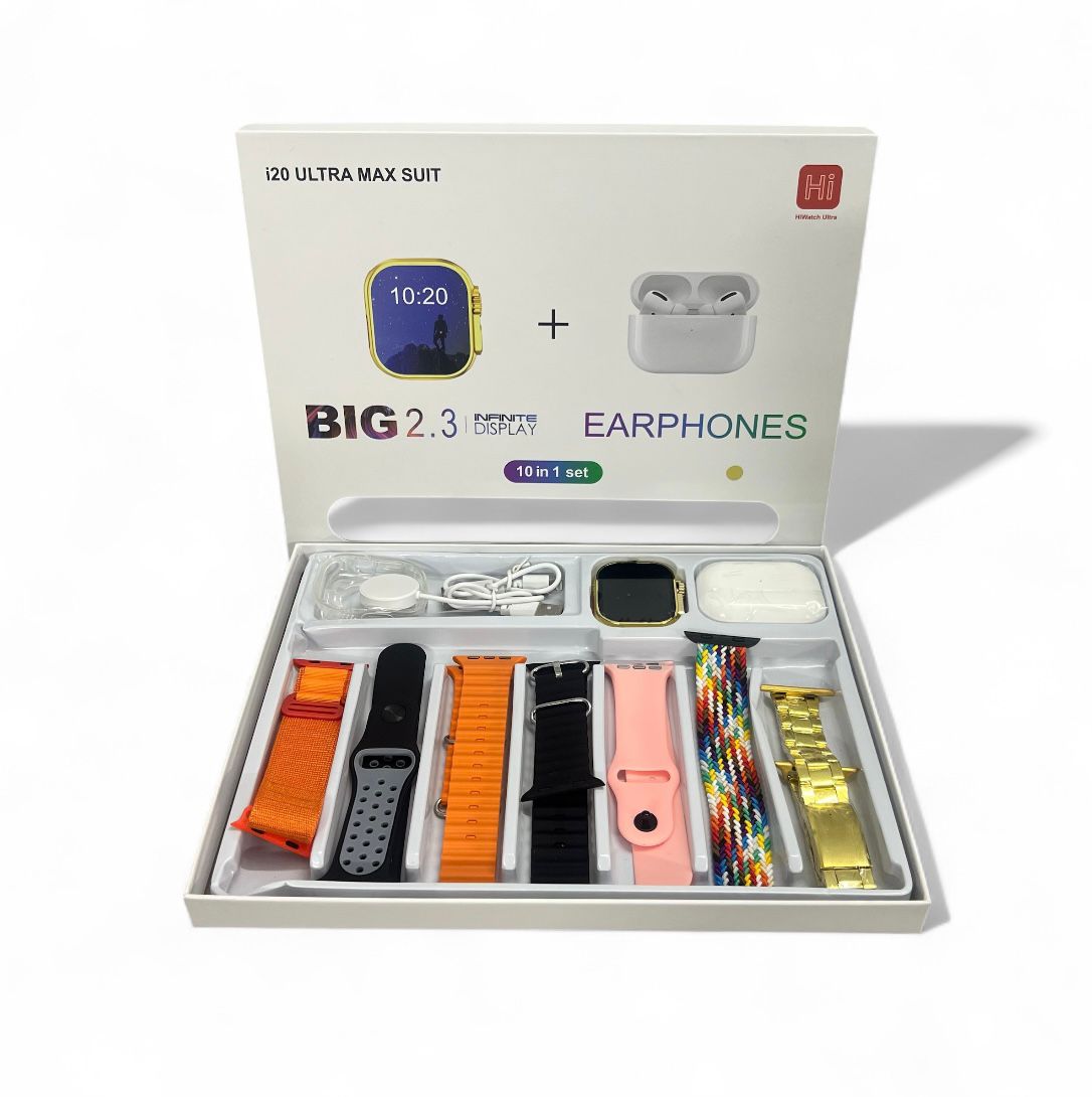 i20 Pro is the ultimate combo, bringing together the power of a premium smartwatch and advanced wireless earbuds in one package. With the watch, you get a rugged design, stunning display, and all-day health and fitness tracking, while the earbuds deliver rich sound, active noise cancellation, and personalized audio for an immersive experience. Together, i20 Pro keeps you connected, motivated, and entertained—whether you’re at the gym, at work, or on the go.